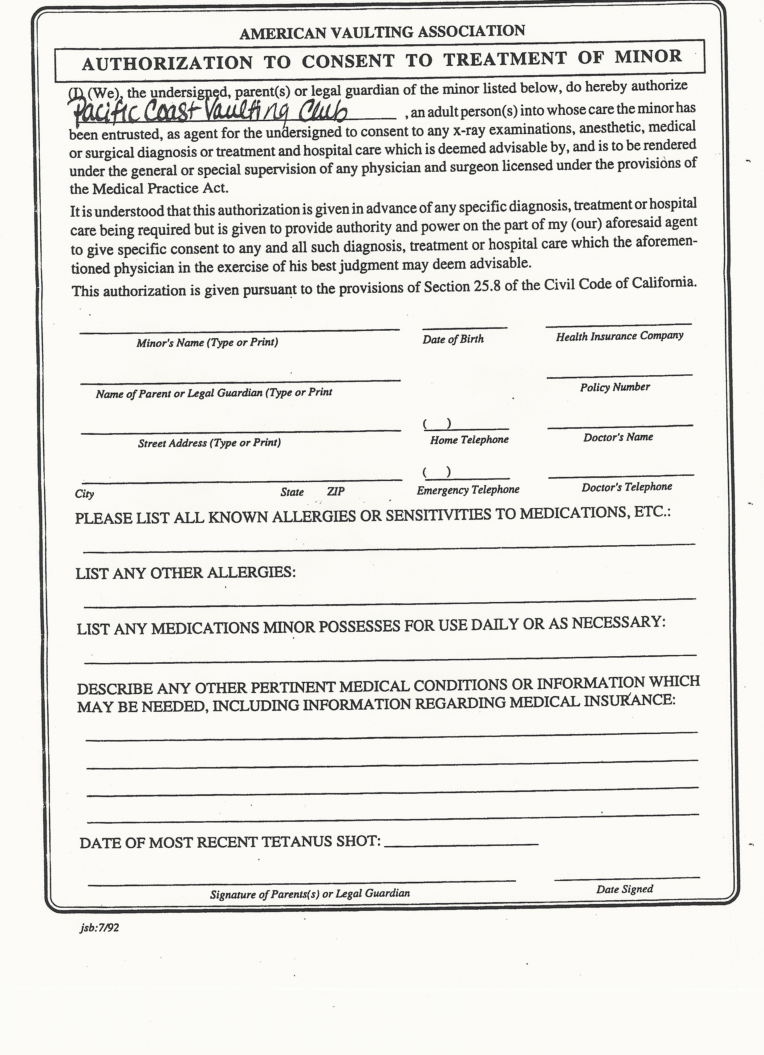 Do you want to try vaulting? Your first lesson is complimentary, stop by Saturday's at 9:00am- 10:45am. Wear gym type leggings, a T-shirt you can tuck in, your tennis shoes, and a sweatshirt if it is cold. Have your parents or guardians click on the links below and fill out and sign the forms, bring them with you.